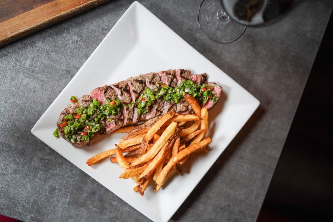 Overlooking the main dining room, the mezzanine is the ideal space for an intimate group dinner or to enjoy cocktails in a lounge environment.